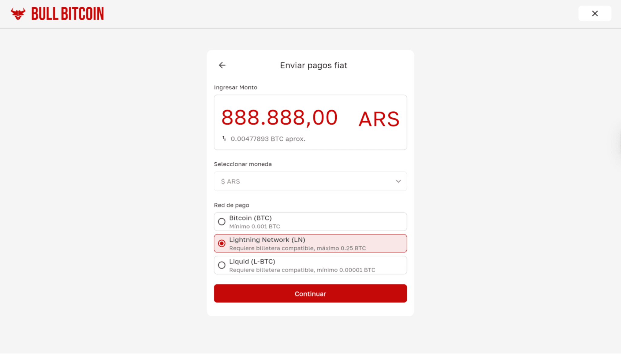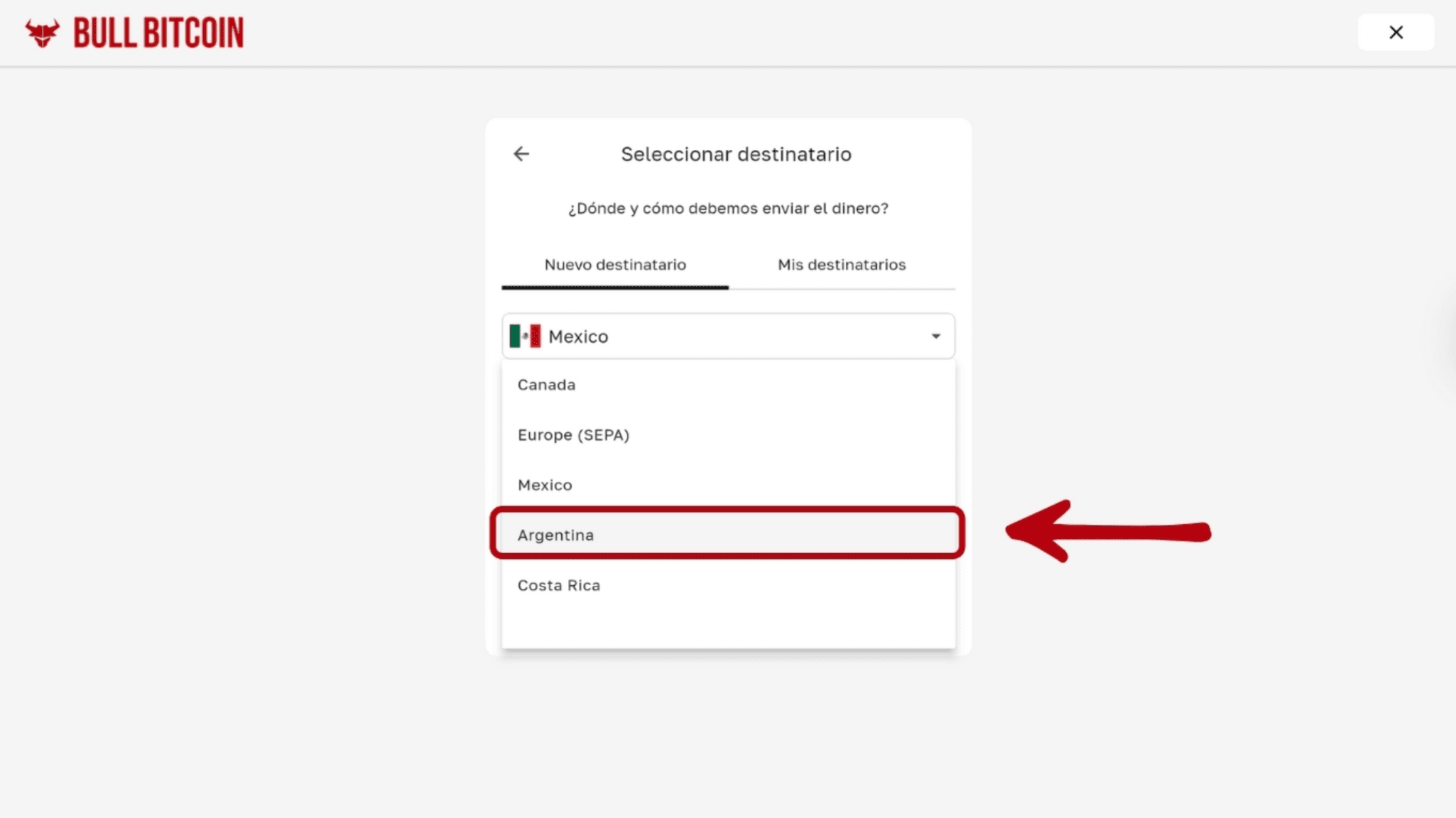 Con Bull Bitcoin, eso queda en el pasado. Con Bitcoin como puente, el proceso es seguro, transparente y casi instantáneo. Simplemente vendes Bitcoin y decides a quién se envía el dinero fiat: directo a cualquier cuenta bancaria en México o Argentina. Sin intermediarios especulativos — tu dinero llega en cuestión de minutos, con tasas transparentes y el control siempre en tus manos.