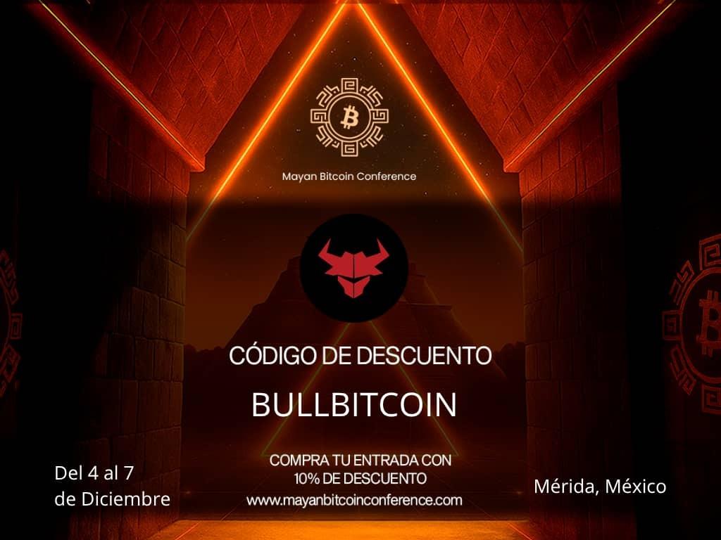 Visita mayanbitcoinconference.com y usa el codigo “BullBitcoin” para obtener un 10% de descuento en tus boletos.